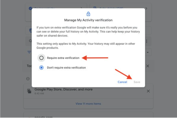 تقدّم Google الكثير من الأدوات للمساعدة في إدارة حسابك وبياناتك الشخصية الخاصة، وتسمى إحدى هذه الأدوات My Google Activity. من خلال هذه الأداة يمكنك رؤية كل ما تجمعه Google من بيانات حول كيفية استخدامك لخدماتها. وبحسب Google فإنّ ذلك يساعدها على التنبؤ بشكل أفضل بما قد تبحث عنه أو تهتم به، ونظرًا لأهمّية هذه الأداة يمكنك إضافة طبقة حماية وذلك للحفاظ على بياناتك آمنة إذا تمكّن شخص ما من الوصول إلى جهاز الكمبيوتر أو الحساب الخاص بك.