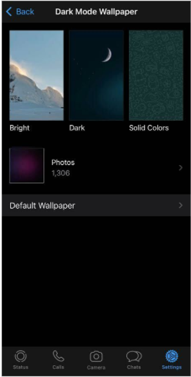 4. انقر على Choose Light Mode Wallpaper المتوفّرة في الجزء العلوي (أو Choose Dark Mode Wallpaper بناءً على الوضع الذي تعتمد عليه أثناء استخدام WhatsApp).