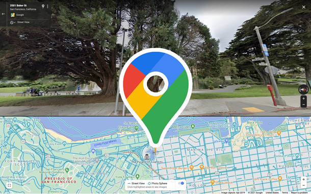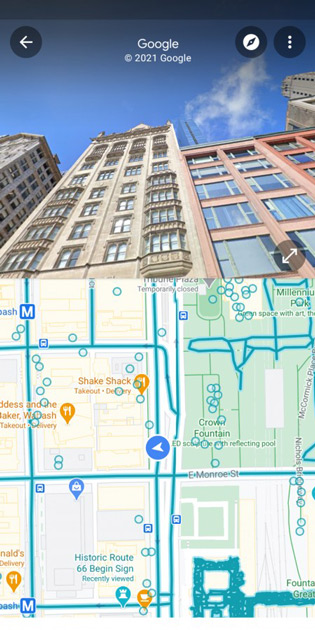 أطلقت Google تحديث جديد لتطبيق Google Maps يأتي بميزة نمط تقسيم الشاشة لدعم المستخدمين في عرض Street View. تعرض الخريطة الصور المتاحة (إما SV أو كصور بانورامية، وكلاهما مظلل باللون الأزرق)، بحيث يمكنك النقر للانتقال إلى موقع معين.