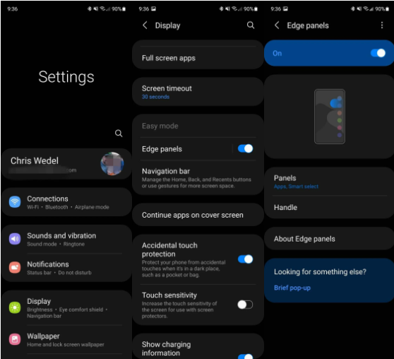 - قم بالتمرير إلى الأسفل إلى Edge panels واضغط عليها.
