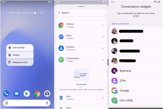 نستطيع تثبيت إحدى المحادثات المهمة لدينا على شاشة الهاتف الرئيسية باستخدام أداة المحادثات الجديدة وذلك باتباع الخطوات التالية: