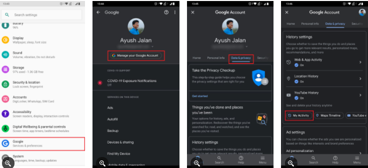 - انتقل إلى Google> إدارة حساب Google الخاص بك> البيانات والخصوصية.