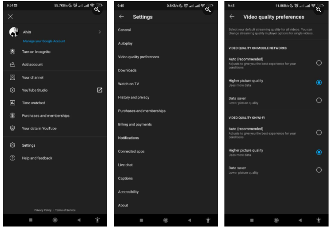 - جودة عالية: والتي تعرض لك مقاطع فيديو بدقة 720 بكسل أو أعلى وتستخدم المزيد من البيانات.