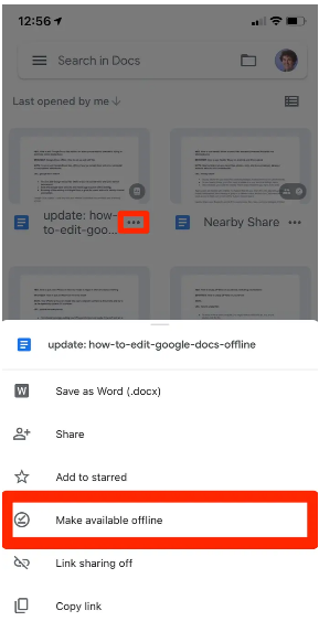 - افتح تطبيق مستندات Google وابحث عن الملف الذي تريد تحريره في وضع عدم الاتصال.