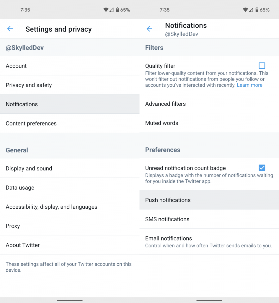 يحتفظ التطبيق تويتر بكامل الإعدادات التي قمنا بها تلقائياً إلا أن ذلك يختصّ بكل جهازٍ على حدة إذ أن إلغاء هذا النوع من الإشعارات نهائياً يتطلّب منا إيقاف تفعيلها في الأجهزة الأخرى أيضاً.