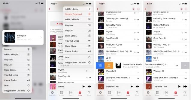 أما بالنسبة للتعديلات على تطبيق الموسيقى فقد تحول إلى قوائم منبثقة، والتي من خلالها يمكن عرض واجهة المستخدم بشكل كامل. وتمت إضافة طريقة أسرع لتعديل قوائم التشغيل أيضًا، حيث يمكنك التمرير إلى اليسار أو اليمين على المسار.