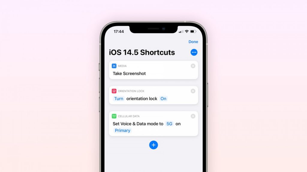 وقد تم إضافة ثلاثة تعديلات جديدة على تطبيق Shortcuts وهي: أخذ لقطة للشاشة، وقفل الاتجاه (تشغيل / إيقاف)، أيضًا وضع الصوت والبيانات (5G ، 5G Auto ، 4G ، 3G).