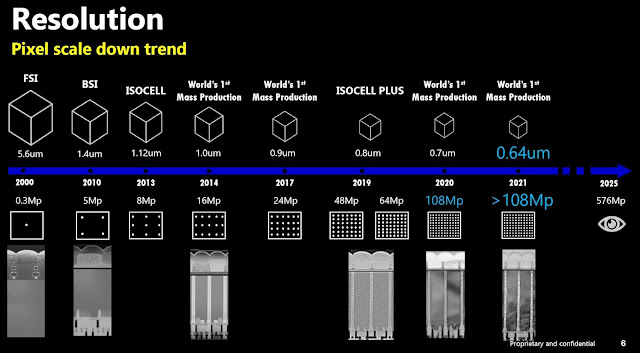 كما أضافت بعض المصادر الأخرى بأن سامسونج تخطط إلى تقديم مستشعرات التصوير ذات الدقة 576 ميجا بكسل خلال العام 2025، ولا زالت تفاصيل هذا المستشعر مجهولةً تماماً، ولكن سبق لسامسونج وأن قالت بأن المستشعرات 500 ميجا بكسل سيكون لديها القدرات المكافئة لما تبصره العين البشرية.