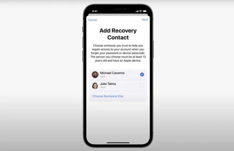 وعقب اعتراض المستخدمين على مثل هذه المسائل، جاء النظام الجديد iOS 15 مع ميزة جديدة تدعى استعادة الحساب الشخصيّ أو Account Recovery، ومن خلالها يستطيع المستخدم إجراء مكالمة هاتفية مع صديقٍ مقرّبٍ له ليستقبل رمزاً خاصاً بإلغاء قفل الحساب وإعادة تعيين كلمة المرور من جديد.