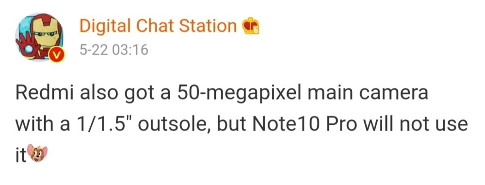 وتزعم بعض المصادر حالياً بأن شاومي قد بدأت في العمل على إضافة المستشعرات 50 ميجا بكسل إلى هواتفها القادمة، إلا أن الطراز الصيني من الهاتف Redmi Note 10 pro لن يحتوي هذه الكاميرا.