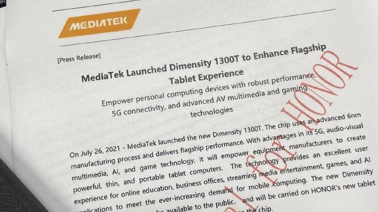 انتشرت مؤخراً بعض المعلومات عن هاتف Honor القادم والذي يدعى Honor V7 Pro، وقد أشارت هذه المعلومات إلى تشغيل الهاتف بالشرائح غير المسبوقة Dimensity 1300T من MediaTek، كما أكّدت صور المؤتمر الصحفي لشركة MediaTek على صحة المعلومات السابقة أيضاً.